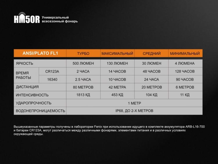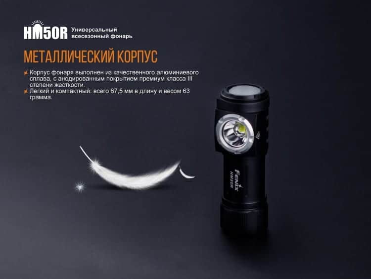 Гарантия: Период фирменной гарантии, которая предоставляется производителями, составляет 5 лет, начиная с даты приобретения фонарей Fenix HM50R.