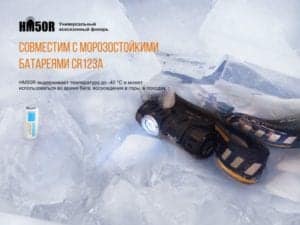 Что касается питания фонаря, для модели HM50R потребуется всего один компактный аккумулятор размера 16340. В комплект производители включили фирменный литий-ионный элемент питания с емкостью 700 мАч. В качестве запасного, можно выбрать и любой другой аккумулятор с подобными характеристиками, а также батарейки CR123A. При условии установки аккумулятора из комплекта, фонарь сможет светить до 90 часов, а энергии одной литиевой батарейки хватит на 128 часов освещения при яркости 4 люмена.