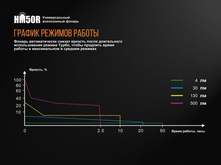 яркость модели HM50R — 500 люмен;