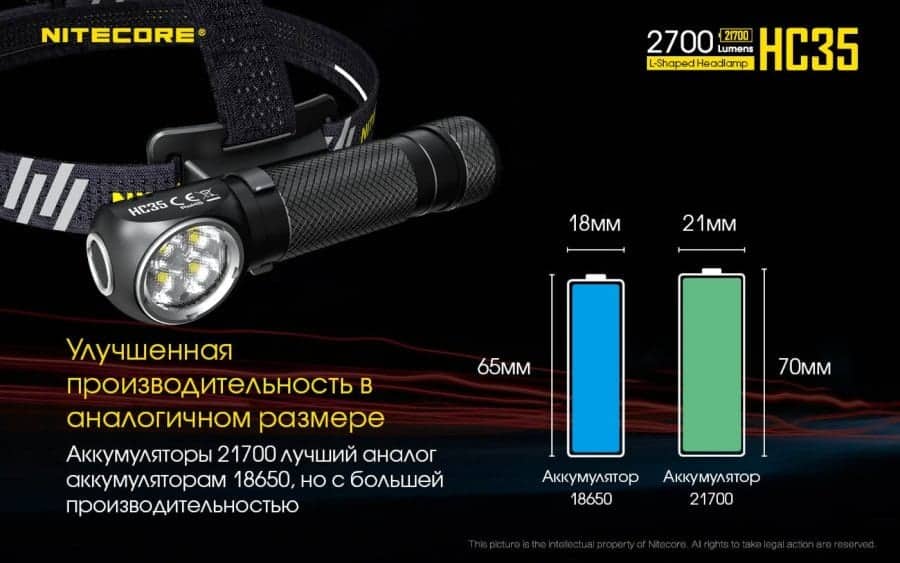Встроенный аккумулятор нового поколения 21700 позволяет НС35 работать до 1200 часов — это 50 дней (при использовании самого низкого режима).
