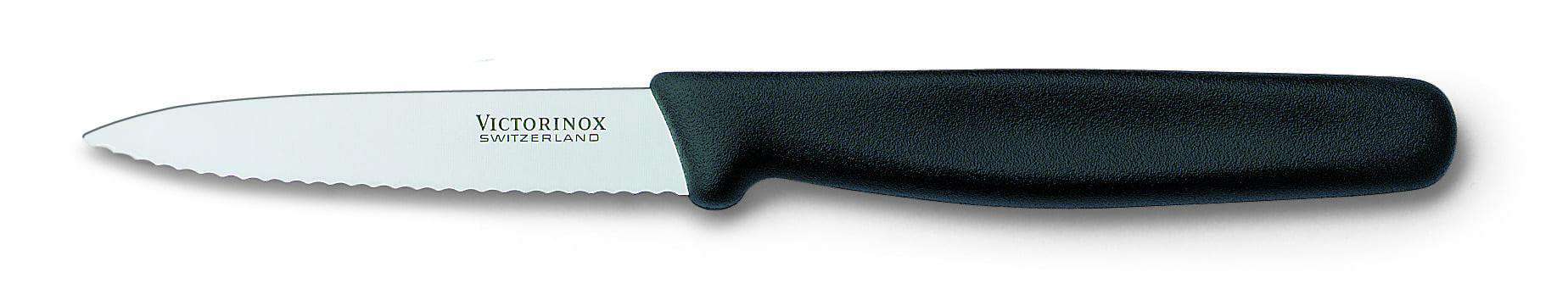 Нож бытовой, кухонный Victorinox Paring с серрейт. лезвием (лезвие: 80мм), черный 5.3033