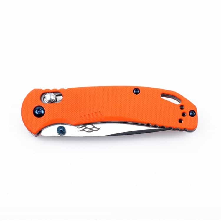 Рукоятка в модели Firebird F753M1 изготавливается из композитного материала, что само по себе говорит о ее надежности. А поскольку, композит G10 легко принимает нужную форму, ручка ножа — особенно удобная. Чтобы она не проскальзывала в ладонях, поверхность накладок сделана шершавой (с мелкой накаткой). Для ножей данной модели возможны варианты с оранжевой, черной или зеленой рукояткой.