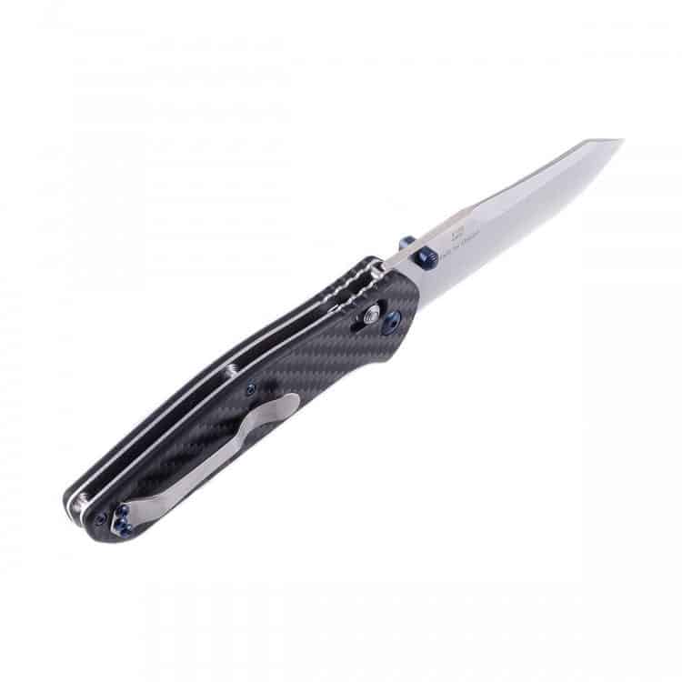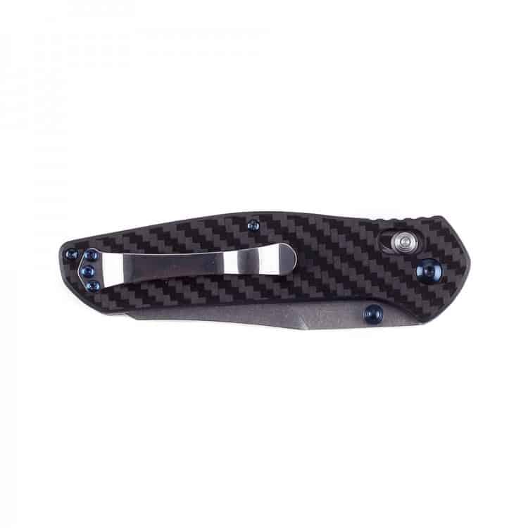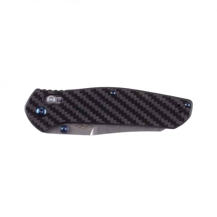 Рукоятка изготовлена из композитного материала «carbon fiber», в основу которого легла углеродная ткань. Это придаёт ручке лёгкость, но повышенную жёсткость и прочность. Текстура материала делает нож очень симпатичным, также она совершенно не скользит даже во влажной руке. Форма рукояти также продумана инженерами Ganzo – работать им одно удовольствие.