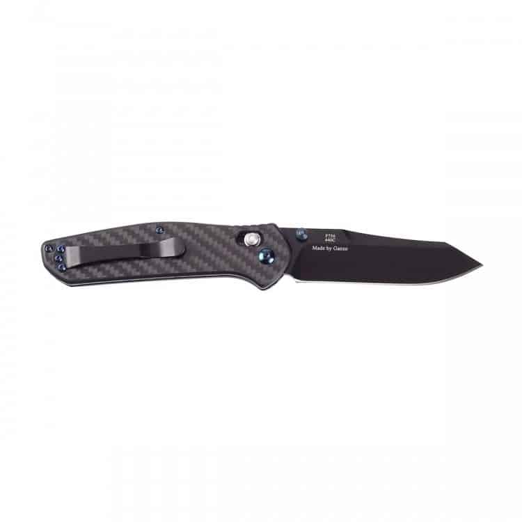 Рукоятка изготовлена из композитного материала «carbon fiber», в основу которого легла углеродная ткань. Это придаёт ручке лёгкость, но повышенную жёсткость и прочность. Текстура материала делает нож очень симпатичным, также она совершенно не скользит даже во влажной руке. Форма рукояти также продумана инженерами Ganzo – работать им одно удовольствие.
