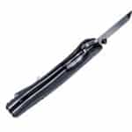 клинок ножа имеет двухсторонний шпенек и специальный «плавник»;