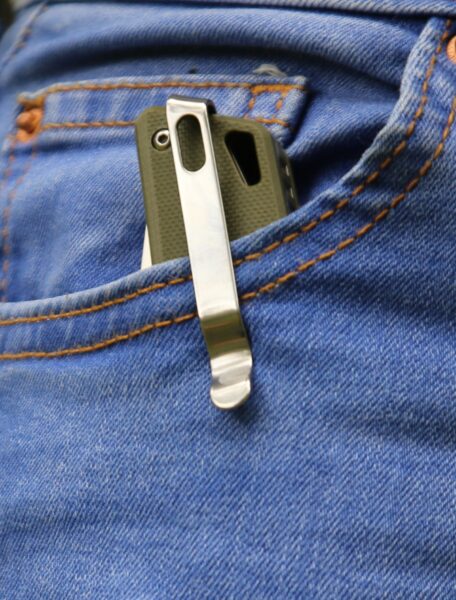 Важной частью ножа является встроенный в него нож. Именно для этой модели используется Axis Lock. Этот замок встроен в ручку, украшенную накладками, представляющими две пластины из G10. Такой материал хорошо поддается обработке, поэтому ручка ножа удобно лежит в руке. А для удобного ношения ножа, на рукоятке имеется небольшая прижимная клипса, положение которой не меняется.