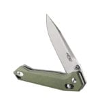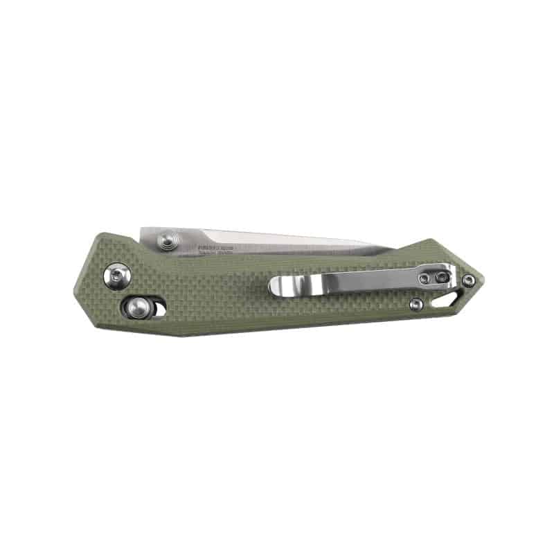 Клинок извлекается из ножа при помощи стандартных стальных шпеньков и фиксируется фирменным замком, названным Axis Lock. За скорость и плавность извлечения отвечают осевые подшипники. Форма клинка clip-point является очень удобной для выполнения самых разных операций бытового характера. Достаточно востребованы модели с подобным профилем среди охотников и любителей экстремального досуга. Форма одинаково хороша и для использования в быту, и в качестве средства обороны.