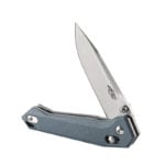 Новинка предлагается покупателям в трех вариантах расцветки – черном, зеленом, сером, все версии абсолютно одинаковы. Отличие состоит только в цвете и материале накладок на рукоятки. Нож представляет собой складной повседневный экземпляр, и может быть использован дома, на пикнике, на работе, во время поездки, на прогулке и в иных ситуациях. Незначительные габариты приспособления позволяют носить его с собой ежедневно. Длина клинка новинки достигает 8,3 сантиметра, полная длина ножа – 19,9 сантиметра. Вес – чуть более ста грамм. Толщина клинка составляет 0,32 сантиметра.