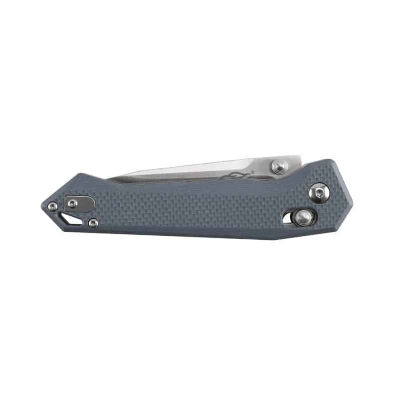 Клинок извлекается из ножа при помощи стандартных стальных шпеньков и фиксируется фирменным замком, названным Axis Lock. За скорость и плавность извлечения отвечают осевые подшипники. Форма клинка clip-point является очень удобной для выполнения самых разных операций бытового характера. Достаточно востребованы модели с подобным профилем среди охотников и любителей экстремального досуга. Форма одинаково хороша и для использования в быту, и в качестве средства обороны.