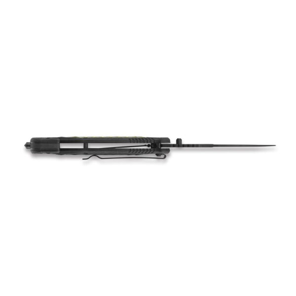 Конструкция ножа раскрывается несколькими способами: нажатием на плавник флипера или на шпеник, закрепленный с левой стороны клинка. Открытый клинок фиксируется стальной пластиной замка Liner lock, лишающей лезвие возможности бесконтрольной сборки.