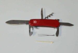 | Функции: | Нож , Штопор , Консервный нож , Открывалка для бутылок , Отвертка плоская , Зубочистка , Пинцет , Шило , Инструмент для снятия изоляции , Кольцо для переноски |