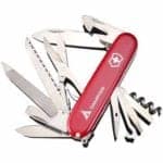 | Функции: | Нож , Пила по дереву , Пила по металу , Штопор , Консервный нож , Открывалка для бутылок , Ножницы , Отвертка плоская , Зубочистка , Пинцет , Пилочка , Инструмент для чистки ногтей , Шило , Крючок , Напильник , Стамеска , Инструмент для снятия изоляции , Кольцо для переноски |