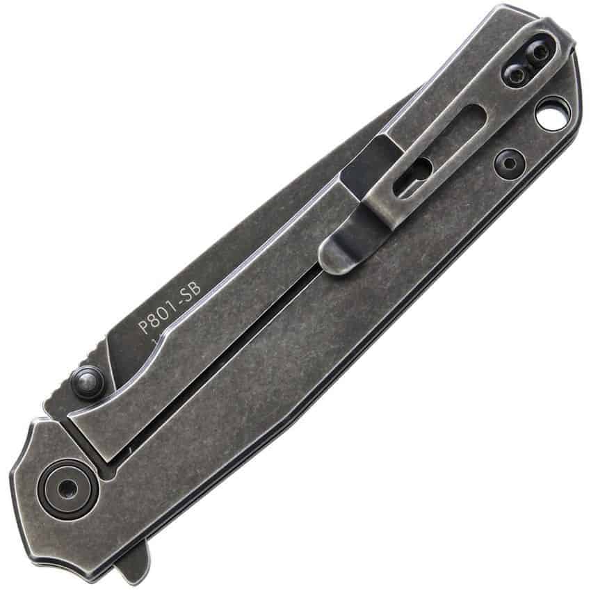 Главным отличием данной модели от «базового» P801 является оригинальная окраска клинка и рукоятки. На их поверхность было нанесено матовое покрытие черного цвета, а затем нож отшлифован методом Stonewash, благодаря чему удалось создать оригинальный «потертый» дизайн.