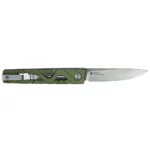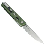 Нож открывается нажатием на флиппер с максимальной скоростью за счет шариковых подшипников в осевом узле и фиксируется замком Liner lock. Рукоятка изготовлена из алюминия, который не покрывается коррозийными пятнами, сохраняя первоначальный вид на протяжении всего эксплуатационного срока.
