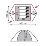 - Два вентиляционных окна с возможностью открытия изнутри палатки