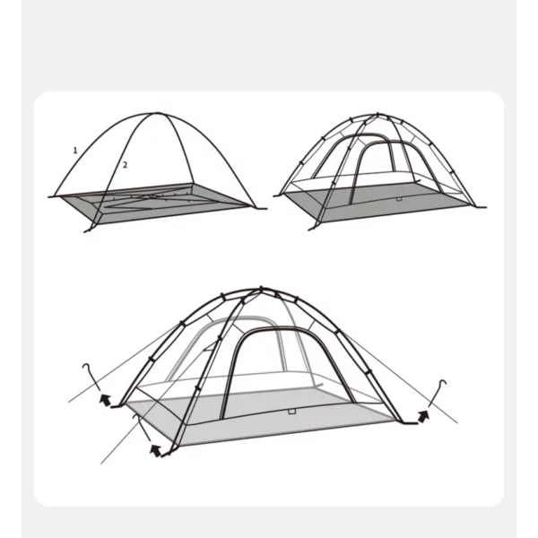 | Комплектация | Палатка, каркасные дуги х 2, алюминиевые колышки х 8, светоотражающие ветрооттяжки х 4, чехол для хранения |