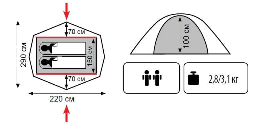 Модель Tramp Wild изготовлена, как и множество других, из плотного полиэстера. Она имеет два слоя для дополнительной защиты. Есть два входа для дополнительного удобства. Модель обладает отличной и яркой раскраской, которую хорошо видно. Если вы заблудитесь в лесу, то сможете увидеть Tramp Wild через множество шагов. Присущ небольшой тамбур с одной стороны для размещения ваших вещей. Обтекаемая полусфера легка в установке – чтобы разложить её вам понадобиться всего лишь 30 секунд! Палатка обладает отличной вентиляцией и вы будете чувствовать себя в ней более чем просто удобно.