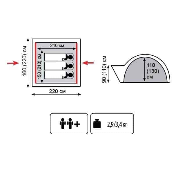 - Двухслойная палатка с двумя входами