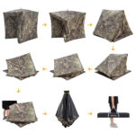 Прочный каркас из стекловолокна и водонепроницаемая оксфордская ткань 150D придают палатке большую прочность. Дверь на молнии обеспечивает бесшумный вход и выход. 4 двойных окна на все 4-х стороны предлагают отличный обзор.