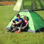 Конструкция палатки однослойная с полусферической геометрией. Используемая конструкция называется «восьмерка» и представляет из себя предварительно собранные и сложенные дуги в виде цифры 8, которые сами распрямляются при доставании палатки из чехла, Вам остается лишь закрепить палатку при помощи колышек и строп. Наружный тент — 190T Polyester с PU (полиуретано-силиконовым) покрытием и водозащитой 300 мм.вд.ст, материал пола — 150D нейлон Oxford с PU покрытием, который также является водозащищенным с водозащитой 1000 мм.вд.ст.