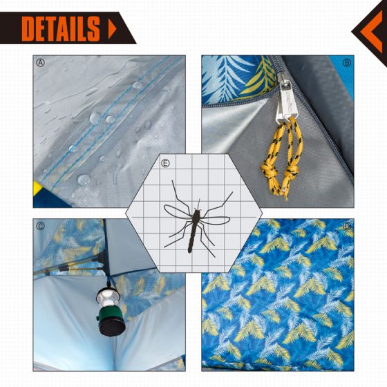| Наружный тент | 190T polyester, PU Waterproof Rated: 1500 mm, UPF50+ |