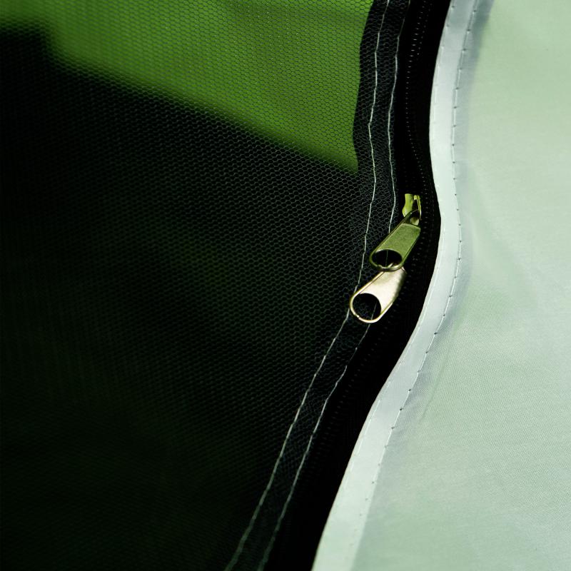 Внутренний щар палатки дополнительно оснащен воздушным клапаном с москитной сеткой. Вход спального отделения продублирован москитной сеткой, можно выбрать или закрыть полностью тканью, или отстегнуть и оставить только москитную сетку, чтобы не было так жарко. В середине есть карман для размещения разнообразных мелочей, вверху — петля для подвешивания фонаря.