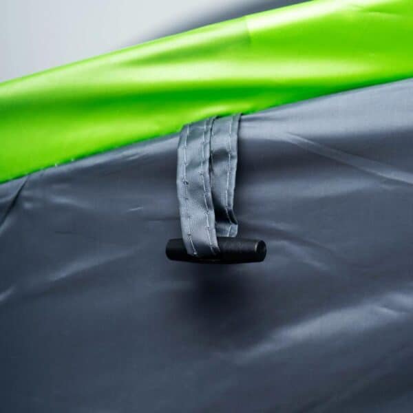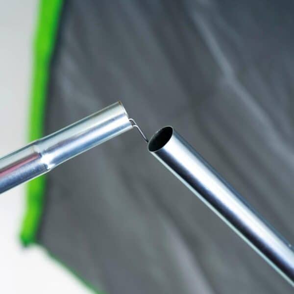 Чтобы облегчить процесс сборки по краям палатки расположены кольца с металлическими вставками в фиксируемые дуги, это предотвращает неожиданное ускользание. Для лучшей фиксации каркаса тамбура дополнительно снизу фиксируется ремнем натяжения.