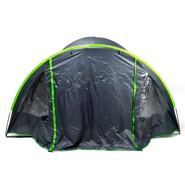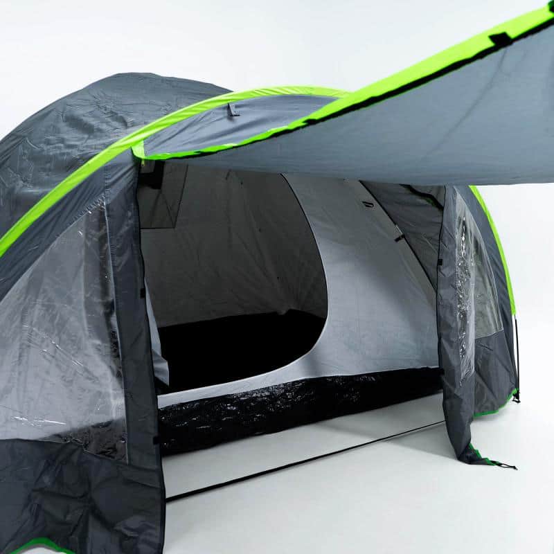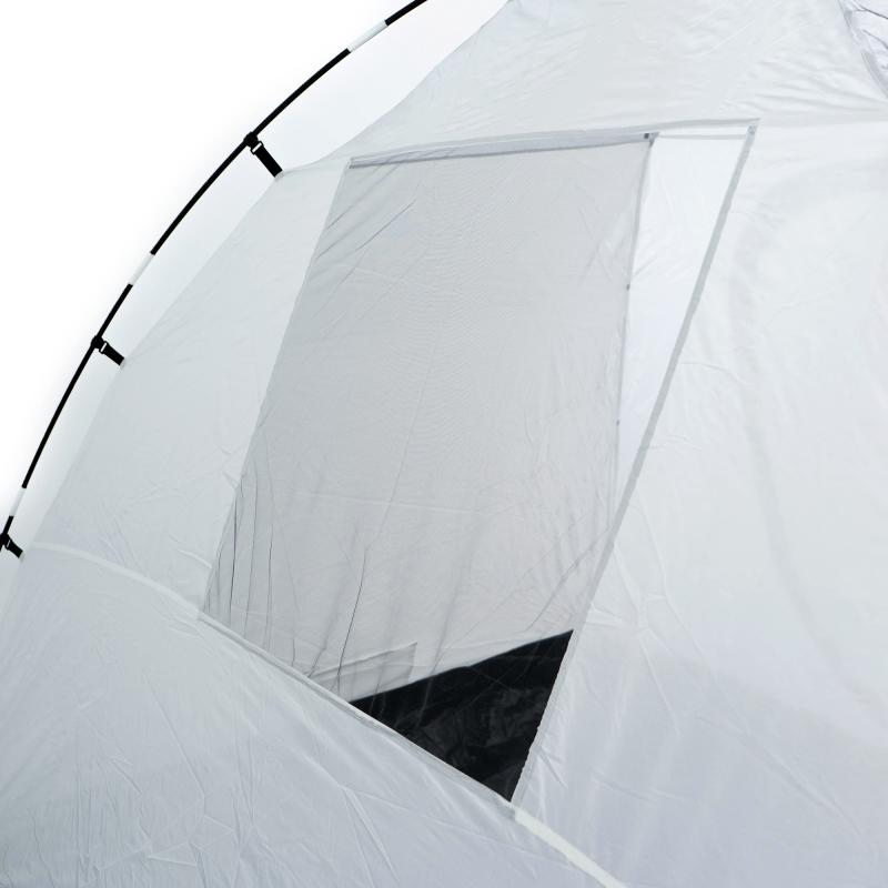 Палатка Ranger Tornado 5имеет очень большой тамбур, который всасывается на дуги, и дополнительно растягивается с помощью веревок. В тамбуре удобно расположить вещи и они будут надежно защищены от непогоды и сделает Ваш отдых еще более комфортным. Тамбур дополнительно оснащен прозрачными окнами, благодаря чему будет попадать больше света в середину. При необходимости тамбур можно открыть и сделать козырек на металлических стойках и использовать в качестве уютного места от солнца. Палатка имеет приятный вид и выполнена в светлых цветах и будет очень гармонично смотреться на природе.