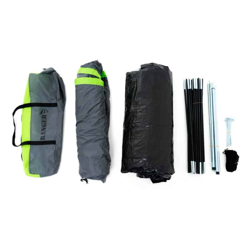 Палатка состоит из двух слоев, благодаря чему Вы будете чувствовать себя защищенными от дождя и нагреванием на солнце. Для изготовления палатки Ranger Tornado 5мы использовали высококачественную и сверхпрочную ткань полиэстер 190Т. Которая по своим характеристикам более легкая и прочная, а так как почти не растягивается при попадании воды и не портится от ультрафиолетовых лучей, поэтому срок эксплуатации продлевается.