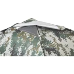 Вход-выход продублирован антимоскитной сеткой, обеспечивает комфортную вентиляцию в жаркую погоду. Основная дверь и сетка оснащены двухсторонней фурнитурой, что позволяет удобно открывать и закрывать их как снаружи, так и изнутри. Купол палатки также выполнен из сетки и защищен сверху небольшим тентом.
