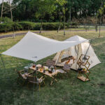 Палатка оснащена дополнительным тентом размером 336 х 355 см. Его можно установить самостоятельно или прикрепить к палатке. Это обеспечит дополнительное пространство, защищенное от солнца и дождя, например для установки стола или игры и отдыха. Навес можно развернуть, например, во время еды, чтобы создать импровизированную столовую. Дополнительный тент имеет отдельные мачты и стойки, что позволяет свободно стоять.