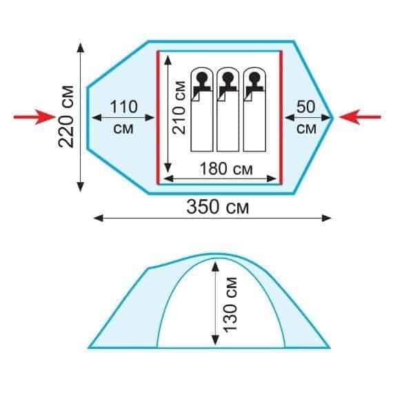 - Внешний тент палатки устойчив к ультрафиолетовому излучению
