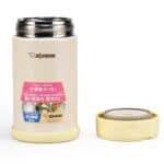 По сей день во всем мире остается популярной японская компания Zojirushi, которая занимается производством высококачественных термосов уже почти 100 лет! Для изготовления всегда выбирают исключительно лучшие материалы – прочный литой пластик (пищевой), а так же нержавеющую сталь, марки 18\10. Модель сделана в приятном оттенке слоновой кости, а крышка и донышко выполнены в нежно – бежевом цвете — такая расцветка несомненно напомнит Вам о домашнем уюте. Приятным дополнением будет, специальное место под крышкой, в которое можно поместить Ваши любимые специи например. Сам термос закручивается герметично и содержимое точно не прольется в сумке. Специальная краска нанесенная на корпус термоса, дает ему дополнительную защиту от разнообразных повреждений. Колба внутри покрыта тефлоном — Non-Stick Coating, благодаря такому нанесению пища не контактирует с металлом на прямую и соответственно не меняет свой вкус.