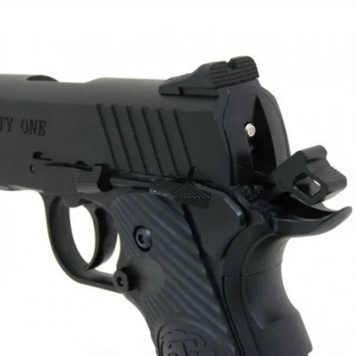 Пневматический пистолет ASG STI Duty One (4,5mm) с функцией BLOWBACK имитирует знаменитый американский Duty One от компании STI International. Производитель ASG имеет все права на копирование, потому что у пистолета есть подлинные маркировки и серийный номер.