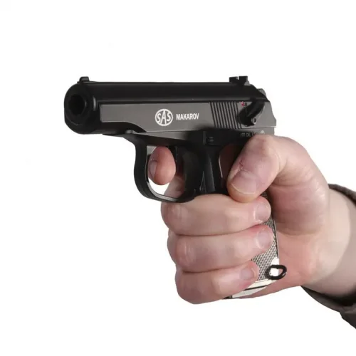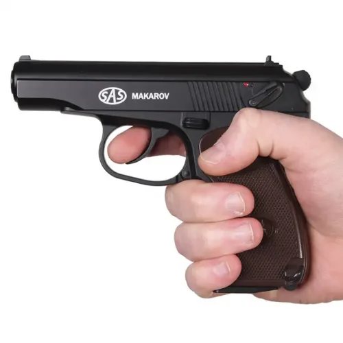 - Комплектация: Пистолет пневматический SAS Makarov, стальные шарики для стрельбы, диаметр 4.5mm — 250шт., инструкция, упаковка
