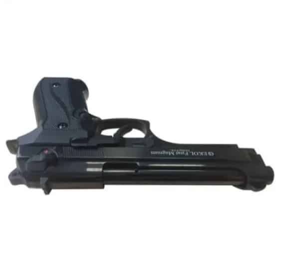 Оснащен ударно-спусковым механизмом двойного действия и затворную задержку, которая по своей функции останавливает затвор в крайней тыльной точке при расходе всех патронов в магазине. В качестве боеприпасов работает с холостыми патронами калибром 9 мм. Общее количество патронов вместительных в магазин пистолета составляет 17 штук плюс один патрон размещенный в патроннике. Общий вес пистолета без патронов составляет 1.125кг.