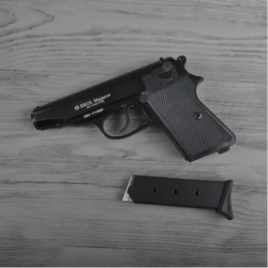 Лучшая реплика на легендарный пистолет Walther PP – это лучший по качеству сигнально-шумовой пистолей от турецкой компании EKOL Majarov. Представленная модель сигнального пистолета совместима с патронами 9-ти миллиметрового калибра. Прибор для стрельбы EKOL Majarov можно купить у нас в интернет-магазине, и также дополнительные аксессуары к нему, купить холостые патроны, купить средства для ухода, купить чехлы и т.д.