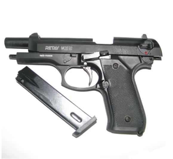 Знаменитая и главное надёжная модель полуавтоматического фирменного стартового сигнального пистолета Retay Mod.92. Представленная модель пистолета, являет собой реплику прославившегося самозарядного пистолета Beretta 92FS. Но предназначенного для отстрела холостых патронов в целях развлечения и спортивного увлечения.