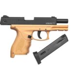 Еще один вариант реплики популярного сигнального пистолета “Taurus” — Retay Taurus PT24. Представлен в необычном цветовой гамме — тан. Оригинальная расцветка является одним из преимущественных качеств производителя сравнительно с аналогами. Данная модель представляет собой полуавтоматический стартовый пистолет. Изготовлен из высококачественного полимера, ствол — стальной.