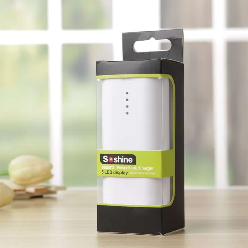Фирменный качественный PowerBank со сменными элементами питания от известной компании Soshine. За счет крышки слайдера производить замена аккумуляторов. Работает данное устройство на двух литиево-ионных аккумуляторах типа 18650 как с платой защиты, так и без нее. Soshine E4С способен не только отдавать заряд внешним устройствам, например, телефона, планшеты, но и также может служить для зарядки собственных аккумуляторов. Зарядное устройство имеет один USB порт с выходным током 2.1A/1A и напряжением в 5V, и один входной порт microUSB с входным напряжение 5V. Данное устройство имеет функцию автоматического отключения по окончании заряда аккумуляторов, тем самым обеспечивает безопасный и полный заряд защищая аккумуляторы от перезаряда, предотвращая их повреждение.