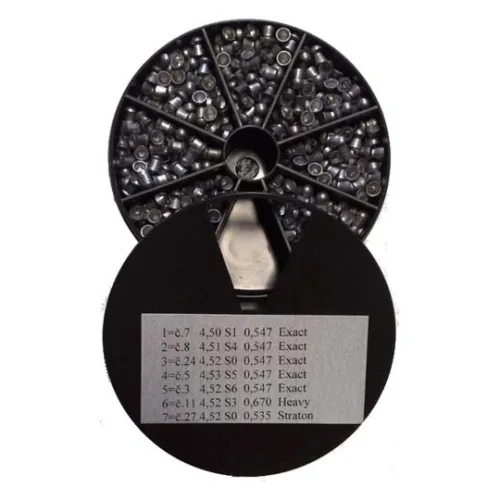 - Включает в себя 7 вариантов шаров по 50 штук: вес 0,547 грамм, диаметр 4,5 мм, 4,51 мм, 4,52 мм и 4,53 мм; вес 0,51 г, диаметр 4,52 мм; вес 0,535 г, диаметр 4,5 мм; вес 0,67 г, диаметр 4,5 мм.