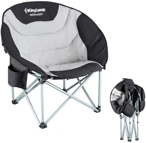 Кресло KingCamp Moon Camping Chair with Cooler (KC3989) – для больших парней, способное выдержать до 150 килограмм нагрузки. Оно действительно устойчиво благодаря особой конструкции рамы. Приятным бонусом будет карман холодильник для вашего любимого напитка. Если вы хотите устроить пикник, если вам нравится комфорт, это кресло будет отличным выбором.