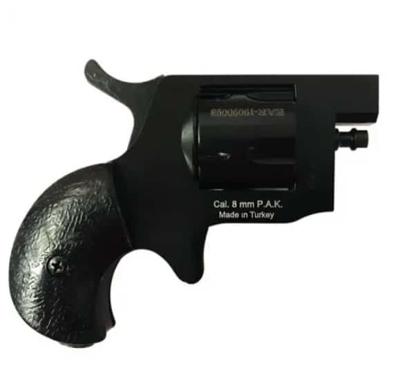 Миниатюрный стартовый револьвер Ekol Arda с самым коротким стволом — 1 дюйм. Заряжается пятью патронами калибром 8 мм. Полностью черный и незаметный.