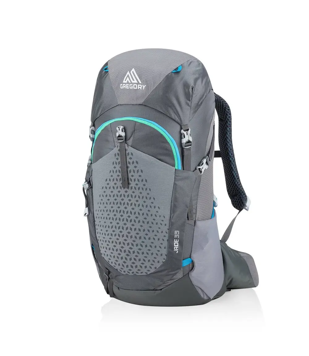 Gregory Jade 33 — женский рюкзак с натяжной вентилируемой сетчатой ​​спинкой для однодневных пешеходных, горных или велосипедных походов. Для точной подгонки под размеры пользователя выпускается в двух размерах — XS/S (объем 30 л) и S/M (объем 33 л). Оснащен адаптивной и гибкой подвеской FreeFloat, совместим с гидратором, комплектуется накидкой от дождя.