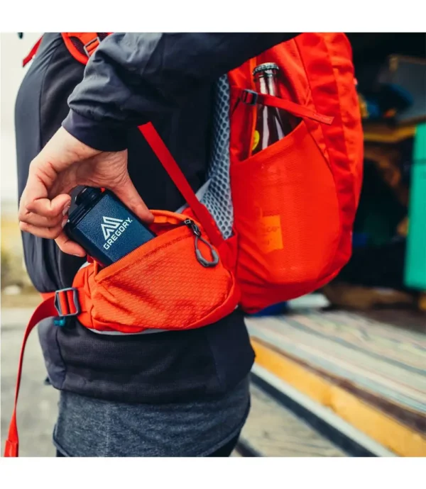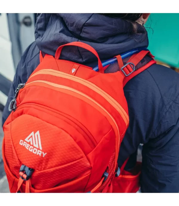 - совместим с питьевой системой — крепление на лямках и отверстие для вывода шланга, внутренний карман с клипсой SpeedClip совместимой с резервуаром Gregory 3D Hydro (резервуар не входит в комплект)