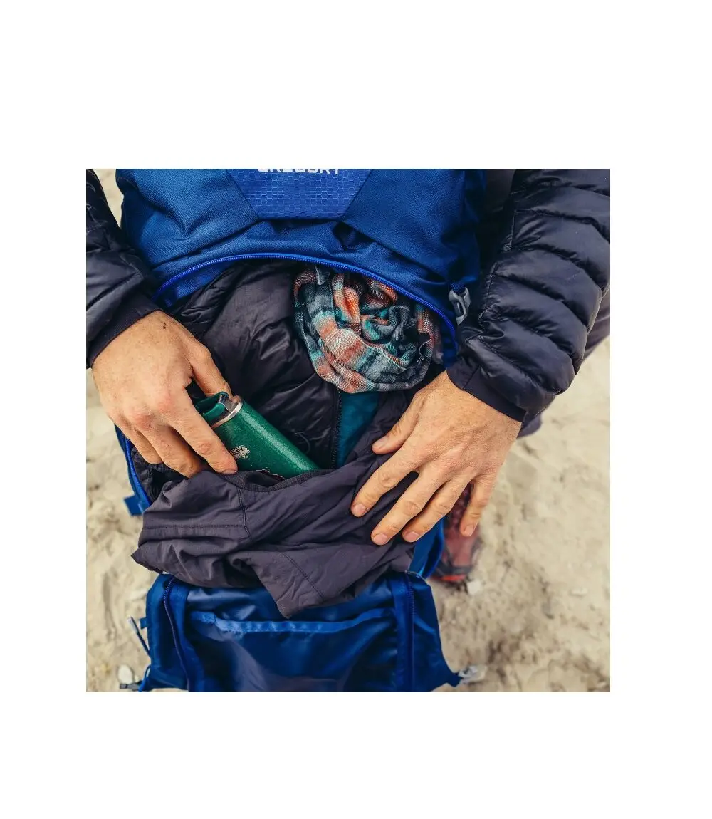 - совместим с питьевой системой — крепление на лямках и отверстие для вывода шланга, внутренний карман с клипсой SpeedClip совместимой с резервуаром Gregory 3D Hydro (резервуар не входит в комплект)