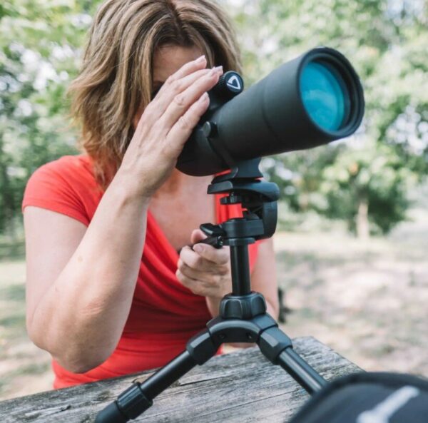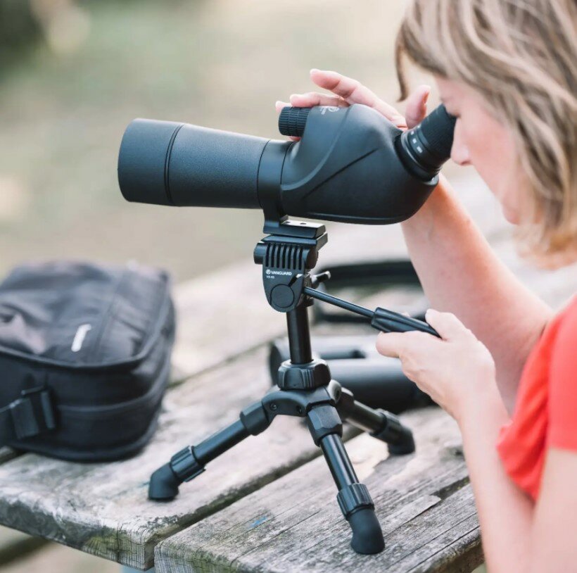 Таким образом его можно использовать для установки среднеразмерных подзорных труб, беззеркальных камер и легких DSLR-камер. Штатив имеет телескопические ножки и выдвижную центральную колонну, таким образом, может быть отрегулирован в диапазоне от 20 до 28.5 см. 2D головка свободно вращается в горизонтальной плоскости и позволяет осуществлять значительный наклон вверх и вниз. Для надежности крепления камер и труб на головке предусмотрен подпружиненный фиксатор.