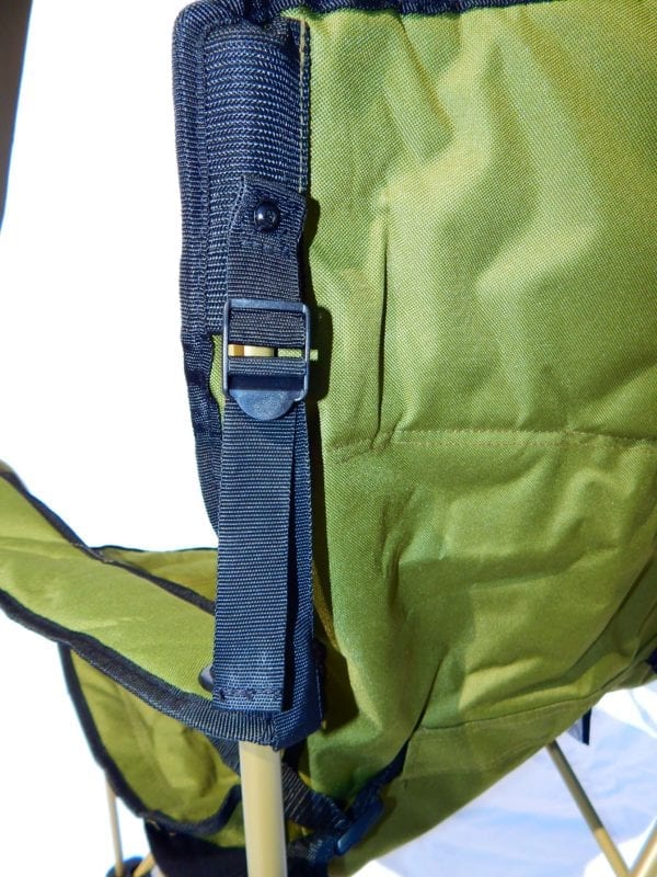 Спинка и подлокотники оснащены ремнями натяжения. Комплектуется чехлом, в который очень компактно складывается кресло.