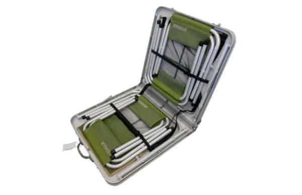 В комплект входит очень практичный, алюминиевый складной стол, в сложенном состоянии представляет собой компактный чемоданчик, поэтому очень он очень легкий при транспортировке. Стол увеличенной площади, отлично подойдет для небольших