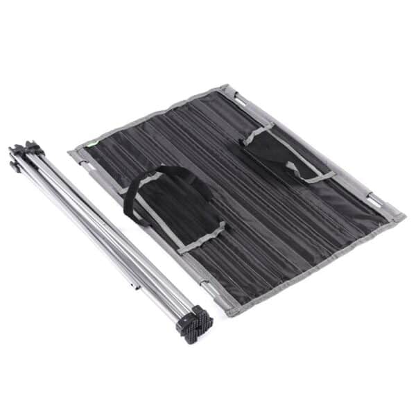 Здесь в конструкции предусмотрены два боковых кармана, куда вы можете поместить разные мелкие предметы. Что опять же очень удобно в условиях похода или вылазки. Сама конструкция стола достаточно проста и надежна. Встраиваемая арматурная доска, продуманный дизайн. Не нужно беспокоиться о том, что скатерть будет скользить. Кроме того, данный стол очень стойкий, адаптированный к рельефу поверхности, который в дикой природе может представлять проблему.